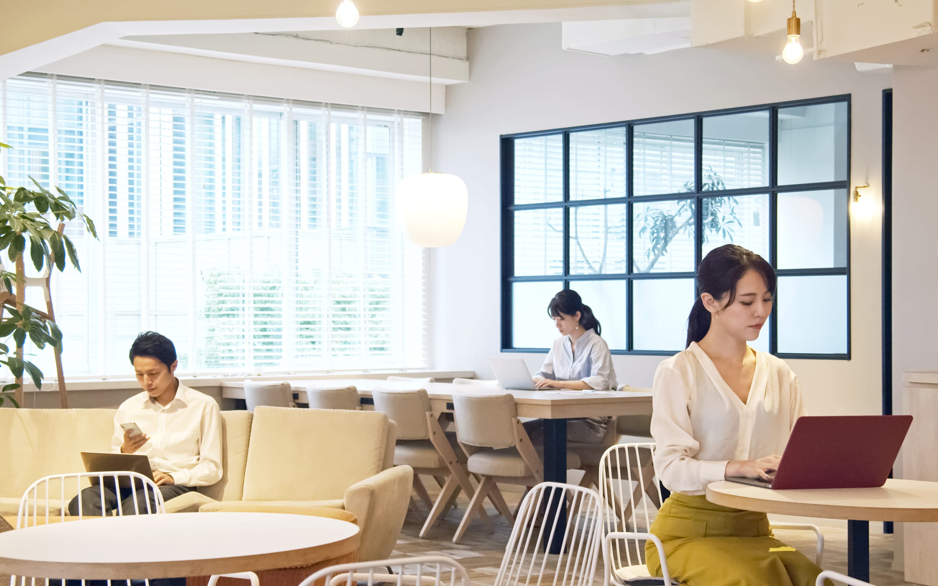 ちょっとした隙間時間に集中して働きたい時や、急な打ち合わせでも+CREW(タスクル)は対応可能です。カフェや自宅では難しいオフィスとしての機能とセキュリティを有しています。